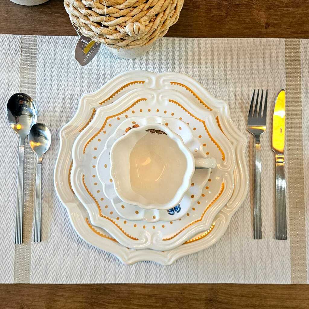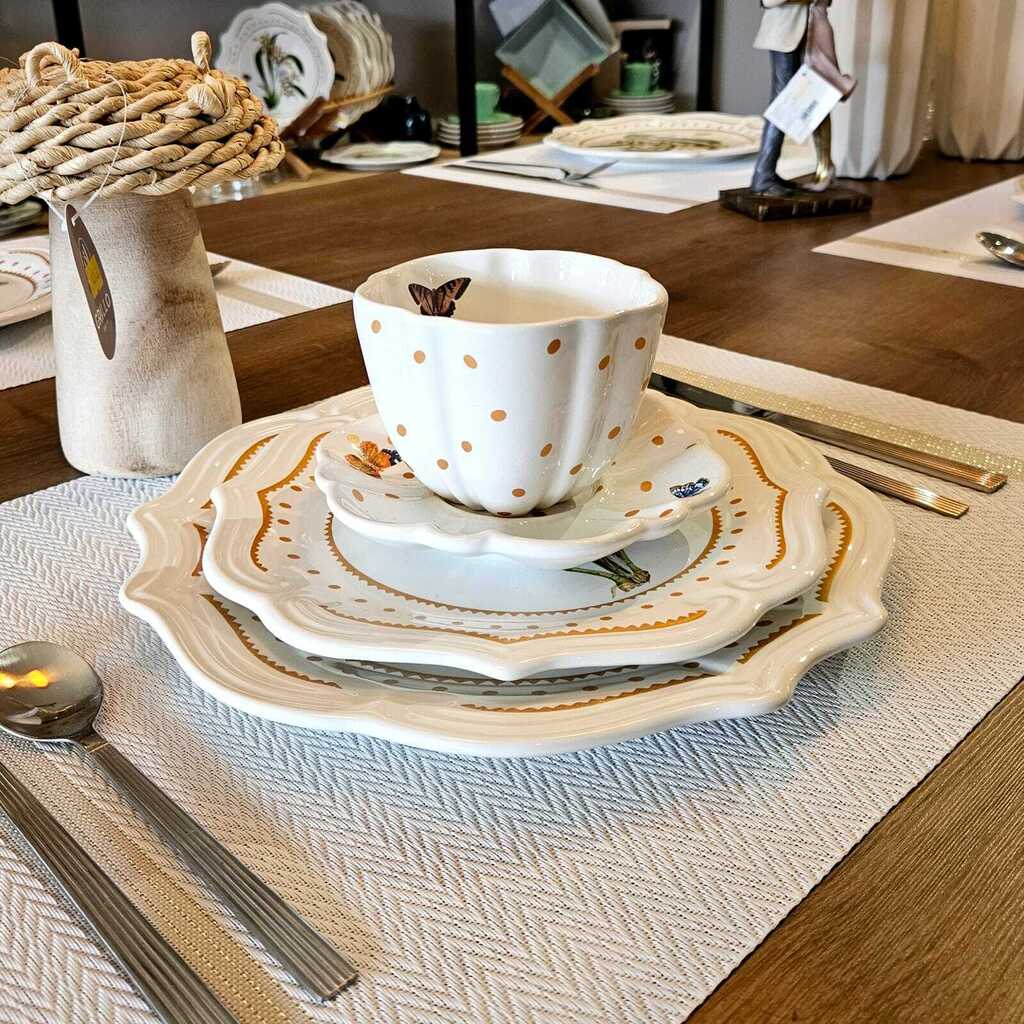 PRATO PARA SOBREMESA CERAMICA LAUREN FLORES VERDES BORBOLETA:
