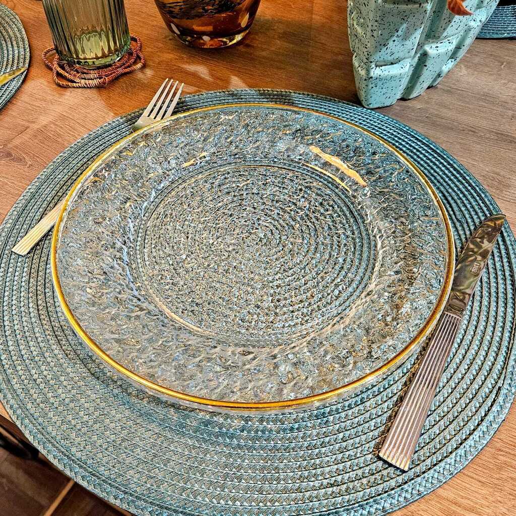 PRATO RASO DE CRISTAL ECOLOGICO FIO DE OURO 28CM: